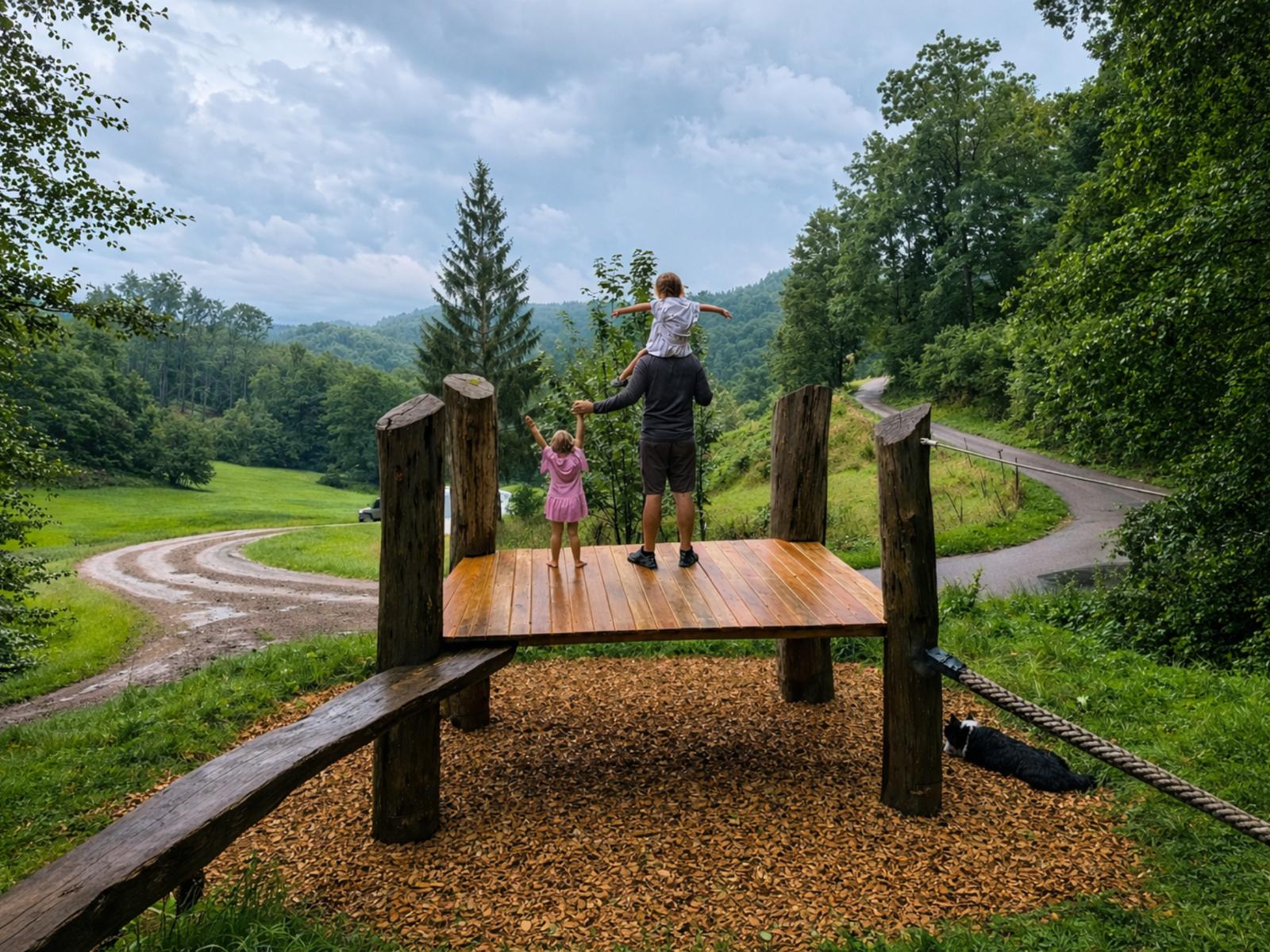 El recorrido termina en una torre panorámica con unas vistas increíbles, y desde ahí puedes lanzarte por un tobogán larguísimo que es la parte más divertida de toda la visita. Abajo te espera el parque del Adventure Forest Sommerberg, un área de juegos muy completa para seguir pasando el rato en plena naturaleza.